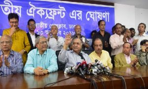 বৃহস্পতিবার রাতে মতিঝিলে জাতীয় ঐক্যফ্রন্টের শীর্ষ নেতা ও গণফোরাম সভাপতি ড. কামাল হোসেনের চেম্বারে জাতীয় ঐক্যফ্রন্টের স্টিয়ারিং কমিটির বৈঠক শেষে সাংবাদিকদের এ তথ্য জানান ঐক্যফ্রন্টের মুখপাত্র ও বিএনপি মহাসচিব মির্জা ফখরুল ইসলাম আলমগীর। তিনি জানান, আজ বেলা ৩টায় প্রার্থী তালিকা প্রকাশ করবে জাতীয় ঐক্যফ্রন্ট।