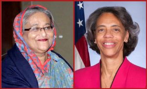 ডেক্স রিপোর্ট : প্রধানমন্ত্রী শেখ হাসিনার সঙ্গে জরুরি বৈঠক করলেন মার্কিন রাষ্ট্রদূত মার্শা বার্নিকাট। মঙ্গলবার সন্ধ্যায় প্রধানমন্ত্রীর সরকারি বাসভবন গণভবনে ওই বৈঠক হয়। কূটনৈতিক সূত্রগুলো বৈঠকের বিষয়টি নিশ্চিত করেছে। জানিয়েছে, সরকার প্রধান ও মার্কিন দূতের মধ্যকার আলোচনা প্রায় সোয়া ঘণ্টা স্থায়ী হয়। বৈঠকটি খুবই তাৎপর্যপূর্ণ বলেই মনে করছে সূত্রগুলো। রাতে এ রিপোর্ট লেখা পর্যন্ত সরকার বা মার্কিন দূতবাস কোনো পক্ষ থেকেই আনুষ্ঠানিক ব্রিফিং কিংবা প্রেস বিজ্ঞপ্তি দেয়া হয়নি। সাধারণত সরকার প্রধানের সঙ্গে ভিন দেশি কূটনীতিক বা গুরুত্বপূর্ণ অতিথিদের সৌজন্য সাক্ষাৎ কিংবা বৈঠকের পর প্রধানমন্ত্রীর প্রেস সচিবের তরফে ব্রিফ হয়।