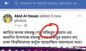 ওই দিন বঙ্গবন্ধুর ৯৮তম জন্মবার্ষিকী উপলক্ষে ঢাকা বিশবিদ্যালয়ের একটি হলে আলোচনা সভা অনুষ্ঠিত হয়। ছাত্রলীগের ঢাকা বিশ্ববিদ্যালয়ের এই ছাত্রলীগ নেতা সামাজিক যোগাযোগ মাধ্যম ফেসবুকে এই সভাকে নিয়ে ওই পোস্ট দেন। এতে তিনি একটি ছবি সংযুক্ত করে লেখেন, ‘জাতির জনক বঙ্গবন্ধু শেখ মজিবুর রহমান এর জন্মদিন উপলক্ষে বঙ্গবন্ধু শেখ মজিবুর রহমান হল। প্রকৃতপক্ষে বঙ্গবন্ধুর নামের আসল বানান হলো ‘শেখ মুজিবুর রহমান।’ আর ঢাকা বিশ্ববিদ্যালয়ের ওই হলটির নাম হলো ‘জাতির জনক বঙ্গবন্ধু শেখ মুজিবুর রহমান হল’। যার ফলে এক পোস্টে দুই ভুলে লিখা হয়েছে বঙ্গবন্ধুর নাম। পরে অবশ্য তিনি ফেসবুক পোস্টটি সংশোধন করে দেন।