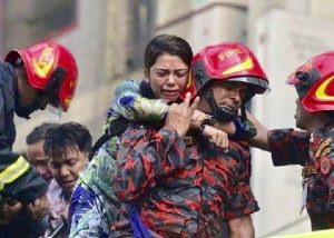 ডেক্স রিপোর্ট : দুপুর পৌনে একটায় লাগা বনানীর এফ আর টাওয়ারের আগুন রাত আটটার দিকে নিভেছে। দিনভর আগুন নিয়ন্ত্রণে আনতে ফায়ার সার্ভিসের ২০টি ইউনিটের পাশাপাশি যোগ দিয়েছে তিন বাহিনী। বিমান বাহিনীর হেলিকপ্টারে চলেছে উদ্ধার তৎপরতা। সবশেষ খবর পাওয়া পর্যন্ত ভয়াবহ এই আগুনে শ্রীলংকান নাগরিকসহ অন্তত ২১ জন নিহত হয়েছেন। আহত হয়েছে অর্ধ শতাধিক। উদ্ধার তৎপরতা চলছে। ফায়ার সার্ভিস ও উদ্ধার তৎপরতায় যুক্ত সূত্রগুলো বলছে ভবনটির অষ্টম তলা ১৩ তলা পর্যন্ত আগুনের উত্তাপ বেশি থাকায় এসকল ফ্লোরে হতাহতের সংখ্যা অনেক বাড়তে পারে।