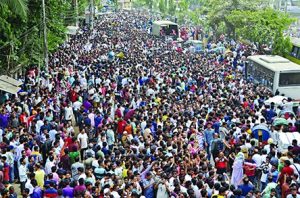 এদিকে ১১টা থেকে ১২টা পর্যন্ত ঘণ্টাব্যাপী মানববন্ধন কর্মসূচিকে কেন্দ্র করে সকাল ১০টা থেকেই বিএনপি ও অঙ্গ দলের নেতাকর্মীরা জড়ো হতে শুরু করে জাতীয় প্রেস ক্লাবের সামনে। জমায়াতের পরিধি বেড়ে প্রেস ক্লাব থেকে সুপ্রিম কোর্টের সামনের কদম ফোয়ারা ও অন্যদিকে পল্টন মোড় পর্যন্ত গিয়ে ঠেকে।