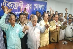 বুধবার বিকালে ড. কামাল হোসেনের মতিঝিলের চেম্বারে জাতীয় ঐক্যফ্রন্টের স্টিয়ারিং কমিটির জরুরি বৈঠক থেকে এ ঘোষণা দেয়া হয়।