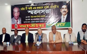জাতীয় পার্টি (কাজী জাফর) মহাসচিব মোস্তফা জামাল হায়দারের সভাপতিত্বে ও যুগ্ম মহাসচিব এসএমএম শামীমের পরিচালনায় আলোচনা সভায় বক্তব্য রাখেন প্রেসিডিয়াম সদস্য এএসএমএস আলম, নওয়াব আলী আব্বাস খান, শফি উদ্দিন ভুঁইয়া, মাওলানা রুহুল আমিন, সেলিম মাস্টার, লেবার পার্টির চেয়ারম্যান মোস্তাফিজুর রহমান ইরান, জাতীয় পার্টির কেন্দ্রীয় নেতা মহসিন সরকার, কাজী মো. নজরুল, ভাসানী স্মৃতি ফোরামের কামরুল হুদা ও মরহুম নেতার মেজ ছেলে মইনুল রাব্বি চৌধুরী প্রমূখ।