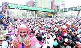 একুশে বার্তা রিপোর্ট : লাখ লাখ মুসল্লির অংশগ্রহণে আল্লাহপাকের কাছে ক্ষমা প্রার্থনা, মুসলিম উম্মাহর শান্তি, ঐক্য, দেশ-জাতির সমৃদ্ধি ও কল্যাণ কামনায় লাখ লাখ মুসল্লির আমিন আমিন ধ্বনিতে মুখরিত আখেরি মোনাজাতের মধ্য দিয়ে টঙ্গীর তুরাগতীরে ৫৪তম বিশ্ব ইজতেমার প্রথম পর্ব গতকাল শনিবার শেষ হয়েছে। আজ রবিবার বাদ ফজর দ্বিতীয় পর্ব শুরু হয়ে সোমবার আখেরি মোনাজাতের মধ্য দিয়ে শেষ হবে এবারের বিশ্ব ইজতেমা। : জানা যায়, গতকাল শনিবার সকাল ১০টা ৪০ মিনিট থেকে ১১টা ৭ মিনিট পর্যন্ত ২৭ মিনিটের এই আখেরি মোনাজাত পরিচালনা করেন বাংলাদেশের কাকরাইল মসজিদের ইমাম হাফেজ মাওলানা মো. যোবায়ের। আজ রবিবার বাদ ফজর দ্বিতীয় পর্বের ইজতেমাকে সামনে রেখে গতকাল শনিবার বিকাল ৫টার মধ্যে (৬ ঘন্টা) ইজতেমা ময়দান খালি করার নির্দেশ দিয়েছে প্রশাসন। গাজীপুর মেট্রোপলিটন পুলিশ কমিশনার ওয়াই এম বেলালুর রহমান জানান, ‘রবিবার বাদ ফজর থেকে দ্বিতীয় পর্ব শুরু হবে। তাই দ্বিতীয় পর্বের ইজতেমায় অংশ নিতে ইচ্ছুকরা গতকাল বিকাল থেকেই আসা শুরু করেছেন। কোনো অপ্রীতিকর পরিস্থিতি এড়াতে প্রথম পর্বের অনুসারীদের ময়দান খালি করে দিতে হবে। এজন্য প্রশাসনের পক্ষ থেকে ৬ ঘন্টা সময় বেঁধে দেয়া হয়েছে। অর্থাৎ বিকাল ৫টার মধ্যেই ইজতেমা ময়দান খালি করতে হবে।’ র্যাব ১-এর সিও (কমান্ডিং অফিসার) লেফটেন্যান্ট কর্নেল সারওয়ার বিন কাশেম বলেন, ইজতেমার প্রথম পর্ব খুব ভালোভাবে সম্পন্ন হয়েছে। দ্বিতীয় পর্বের জন্য সুযোগ করে দিতে বিকাল ৫টার মধ্যে প্রথম পর্বের লোকজনদের ইজতেমা ময়দান খালি করতেবলা হয়েছে। জানা যায়, গতকাল শনিবার যোবায়ের-পন্থী অনুসারীদের আখেরি মোনাজাতে অংশ নিতে ভোর থেকে ঢাকা ও গাজীপুরের আশপাশের জেলা থেকে লাখ লাখ মুসল্লি ইজতেমায় আখেরি মোনাজাতে অংশ নেন। এ সময় ‘আমিন, আল্লাহুম্মা আমিন’ ধ্বনিতে আকাশ-বাতাস মুখরিত করে মহামহিম ও দয়াময় আল্লাহ রাব্বুল আলামিনের সন্তুষ্টি লাভের আশায় মুসল্লিরা আকুতি জানান। মোনাজাতে মারামারি, কাটাকাটি, হানাহানি বন্ধ করে সুন্নতের জিন্দেগী, ঈমান, আমল, আখলাক, ভ্রাতৃত্ব, ঐক্য, সংহতি, আল্লাহকে রাজি-খুশি করার জন্য কোরআন সুন্নাহর আলোকে প্রত্যেক মুসলমানকে নীতি আদর্শ মেনে চলার সক্ষমতা দানে আল্লাহর কাছে প্রার্থনা করা হয়। ইহলৌকিক ও পারলৌকিক কল্যাণ কামনায় দেশ-বিদেশের লাখ লাখ মুসল্লি আল্লাহর দরবারে কান্নাকাটি করেন। মহামহিম ও দয়াময় আল্লাহর সন্তুষ্টি লাভে আকুতি ব্যক্ত করেন। ধনী-গরিব, মালিক-শ্রমিক নির্বিশেষে সর্বস্তরের লাখ লাখ মুসল্লি সবকিছু ভুলে দু হাত তুলে আল্লাহর দরবারে ফরিয়াদ জানান। ইজতেমায় আখেরি মোনাজাতে প্রায় ২৫ লাখ মুসল্লির অংশগ্রহণে আবেগঘন পরিবেশে রাহমানুর রাহিম 