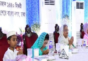 ইফতারের আগে দেশ ও জাতির মঙ্গল কামনা করে বিশেষ মোনাজাত করা হয়। এতে প্রধানমন্ত্রী শেখ হাসিনা অংশ নেন। সূত্র: বাসস।
