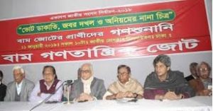 শুক্রবার জাতীয় প্রেসক্লাবের মিলনায়তনে বাম গণতান্ত্রিক জোট আয়োজিত ‘ভোট ডাকাতি, জবর দখল ও অনিয়মের নানা চিত্র’ শীর্ষক গণশুনানিতে এসব কথা বলেন বাম দলগুলোর প্রার্থীরা। একাদশ জাতীয় নির্বাচনে অংশ নেওয়া বাম দলগুলোর প্রার্থীরা এই শুনানিতে তাঁদের অভিজ্ঞতা ও অভিযোগ তুলো ধরেন।