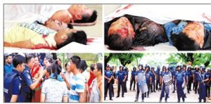 ডেক্স রিপোর্ট : শনিবার সকালে পার্বত্য জেলা খাগড়াছড়ি সদরের স্বনির্ভর বাজার এলাকাসহ দুটি স্পটে পাহাড়ী দুর্বৃত্তদের ব্রাশফায়ারে প্রাণ হারিয়েছে ৭ জন। গুলিবিদ্ধ হয়ে আহত হয়েছে আরও ৭ জন। প্রথম ঘটনায় গুরুতর আহত তিনজনকে চট্টগ্রাম মেডিক্যাল কলেজ হাসপাতালে ভর্তি করা হয়েছে। নিহতদের ৬ জনই ইউনাইটেড ডেমোক্র্যাটিক ফ্রন্ট (ইউপিডিএফ) এর দ্বিধা বিভক্ত সংস্কারপন্থী গ্রুপের সদস্য। অবশিষ্ট একজন মহালছড়ি উপজেলার সহকারী স্বাস্থ্য পরিদর্শক। তিনিও ইউপিডিএফ’র যুব ফ্রন্টের সমর্থক বলে জানা গেছে। এ ঘটনার পর শহর এলাকায় চরম আতঙ্ক সৃষ্টি হয়েছে। থমথমে পরিস্থিতি বিরাজ করছে। ঘটনার কয়েক ঘণ্টা পরও বিভিন্ন পয়েন্টে গুলির শব্দ শোনা গেছে। উদ্ভূত পরিস্থিতিতে সেনা টহল বৃদ্ধির পাশাপাশি আইন-শৃঙ্খলা রক্ষাকারী বাহিনীর তৎপরতা জোরদার করা হয়েছে।