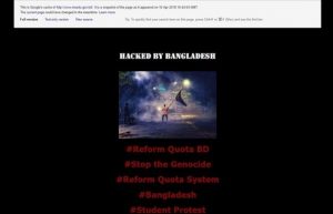 এ সময় এসব ওয়েবসাইটে দেখা যায়, কালো স্ত্রীনের মাঝে কোটা বিরোধী আন্দোলন চলার সহিংসতার একটি ছবি, যেখানে একজন ব্যক্তি বাংলাদেশের পতাকা হাতে নিয়ে দাঁড়িয়ে রয়েছে।