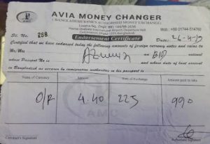 এ রকম অবৈধভাবে ওমান রিয়ের কেনার একটি ভাউচার আমাদের হাতে এসেছে। উক্ত ভাউচারে দেখা যায় ওমান রিয়েল কেনা হয়েছে ২২৫ টাকা দিয়ে। ওমান রিয়েলের বাংলাদেশ ব্যাংকের রেট ২১৮ টাকা। কিন্ত ৭ টাকা বেশি দিয়ে এই ওমান রিয়েল কিনেছে ‘এভিক’ মানি চেন্ঞার। গত ২৬ এপ্রিল ২২৫ টাকা রেটে ওমান রিয়েল কেনা হয়েছে।