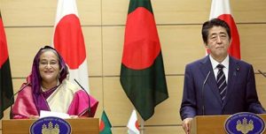 সংবাদ সম্মেলনে প্রধানমন্ত্রী শেখ হাসিনা বলেন, ২০৪১ সালের মধ্যে বাংলাদেশকে উন্নত দেশের কাতারে নিয়ে যাওয়ার লক্ষ্য নির্ধারণ করেছি আমরা। এ লক্ষ্য পূরণে জাপান আমাদের পাশে থাকবে ও প্রয়োজনীয় সহযোগিতা করে যাবে বলে প্রধানমন্ত্রী আবে আমাকে নিশ্চিত করেছেন। জাপান এককভাবে বাংলাদেশের সবচেয়ে বড় দ্বিপক্ষীয় উন্নয়ন সহযোগী। ১৯৭২ সাল থেকে দেশটির কাছ থেকে বাংলাদেশ এক হাজার ১৩০ কোটি ডলারের সহায়তা পেয়েছে। শেখ হাসিনা বলেন, এটা নিশ্চিত করে বলতে পারি যে, জাপান সব সময় আমাদের পাশে আছে। শিনজো আবের সঙ্গে বৈঠকের কথা উল্লেখ করে তিনি বলেন, আমাদের দ্বিপক্ষীয় সহযোগিতাকে আরও শক্তিশালী ও সম্প্রসারণ করার বিষয়ে বেশ কিছু নতুন ধারণা নিয়ে আলোচনা করেছি। সম্ভাব্য যেসব ক্ষেত্র থেকে দুই দেশই লাভবান হতে পারে। সেগুলো নিয়ে কাজ করার বিষয়ে দুই প্রধানমন্ত্রীই একমত হয়েছেন বলে জানান তিনি। শেখ হাসিনা বলেন, আঞ্চলিক সহযোগিতা বাড়াতে ভৌত অবকাঠামোর উন্নয়নেও জাপান সহায়তা দেবে বলে শিনজো আবে নিশ্চয়তা দিয়েছেন। আড়াই বিলিয়ন ডলারের উন্নয়ন সহায়তা চুক্তি করায় শিনজো আবেকে ধন্যবাদ জানান শেখ হাসিনা। বৈঠকে রোহিঙ্গা সংকটের বিষয়টিও উঠে আসার কথা জানিয়ে বাংলাদেশের প্রধানমন্ত্রী বলেন, মিয়ানমার থেকে বাস্তুচ্যুত হয়ে বাংলাদেশে আসা ১০ লাখের বেশি রোহিঙ্গাদের মানবিক ও রাজনৈতিক সংকটের বিষয়ে টেকসই ও দ্রুত সমাধানের উপায় খোঁজার বিষয়ে তারা একমত হয়েছেন। শেখ হাসিনা বলেন, রোহিঙ্গাদের দ্রুত, নিরাপদে ও মর্যাদার সঙ্গে তাদের মাতৃভূমি মিয়ানমারে ফিরে যাওয়ার বিষয়টি জাপান অনুভব করতে পারছে। মিয়ানমারের বাস্তুচ্যুত রোহিঙ্গাদের রাখাইনে ফিরে যাওয়ার মতো সহায়ক পরিবেশ তৈরি করা প্রয়োজন বলেও মনে করে তারা। বুধবার বিকাল পৌঁনে ৬টার দিকে জাপানের প্রধানমন্ত্রীর কার্যালয়ে পৌঁছালে শেখ হাসিনাকে স্বাগত জানান শিনজো আবে। এ সময় সুসজ্জিত একটি দল বাংলাদেশের প্রধানমন্ত্রীকে গার্ড অব অনার দেয়। পরে শুরু হয় বৈঠক।